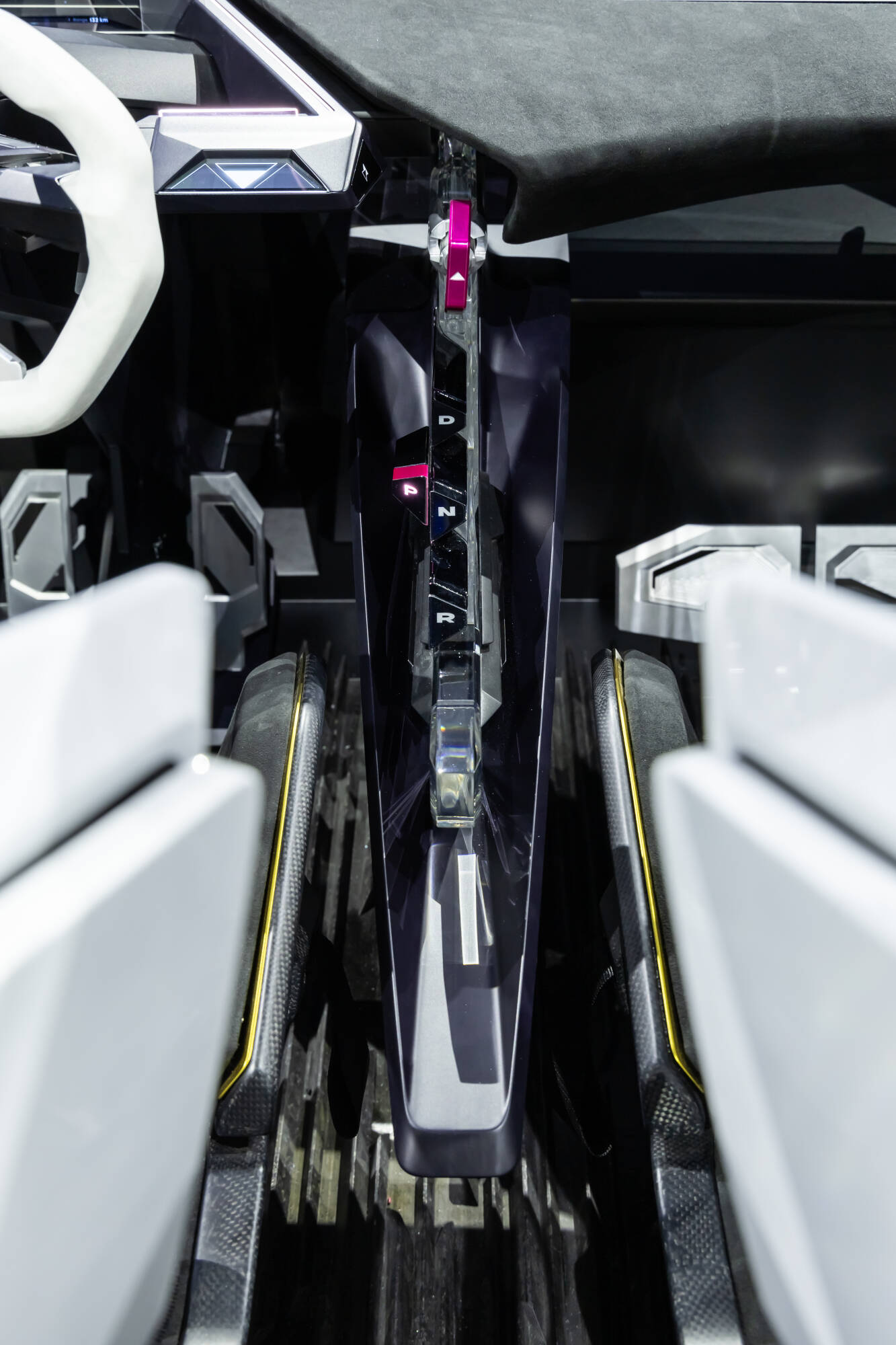 Os bancos dianteiros (baquets da Fórmula 1 digitalizada) com quatro amortecedores hidráulicos, adaptam-se para recriar a posição de um piloto de F1, ou para uma posição quotidiana; já agora o volante tem inspirações nesse desporto, bem como o painel de instrumentos (um triângulo luminoso que representa graficamente o eixo de condução. Três lâminas de vidro atrás do volante, posicionadas sucessivamente, que criam um efeito holográfico para uma leitura dinâmica e multidimensional das informações de condução). Já o passageiro tem também um ecrã (inspiração dos ralis) para “ajudar” o condutor.