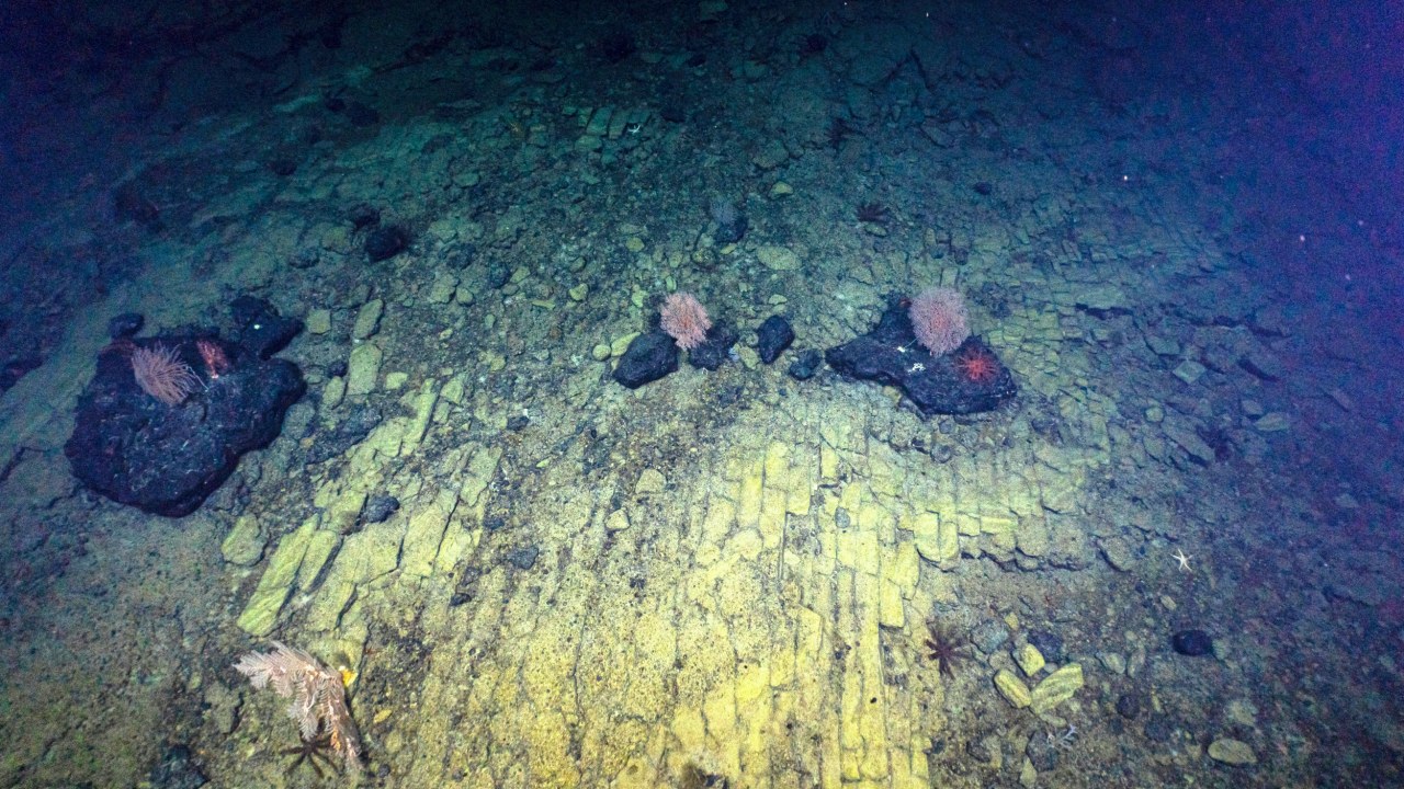 O uso proficiente do braço robótico dá à equipa a oportunidade de inspecionar mais de perto um aglomerado de crosta de ferromanganês, um depósito mineral sedimentar marinho composto por óxidos de ferro e manganês. Com a amostra recolhida, a embarcação segue seu curso e tropeça num trecho surpreendentemente ‘seco’, a que chamam de “crosta cozida”, onde surge a ‘estrada de tijolos amarelos’ de paralelepípedos.