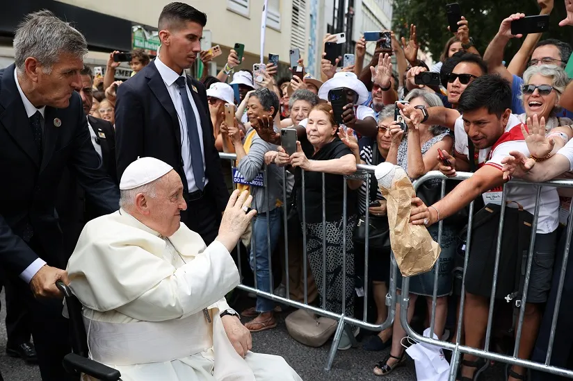 O Papa Francisco quebrou hoje o protocolo e, ao chegar à Nunciatura Apostólica, após sair do Centro Cultural de Belém, em Lisboa, aproximou-se dos populares e foi saudando os peregrinos que ali se encontravam.
