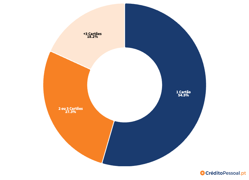 Os dados mostram ainda que a maioria das famílias portuguesas possui apenas um cartão de crédito (54.5%), enquanto 24.3% têm 2 ou 3 cartões para atender às suas necessidades diárias.