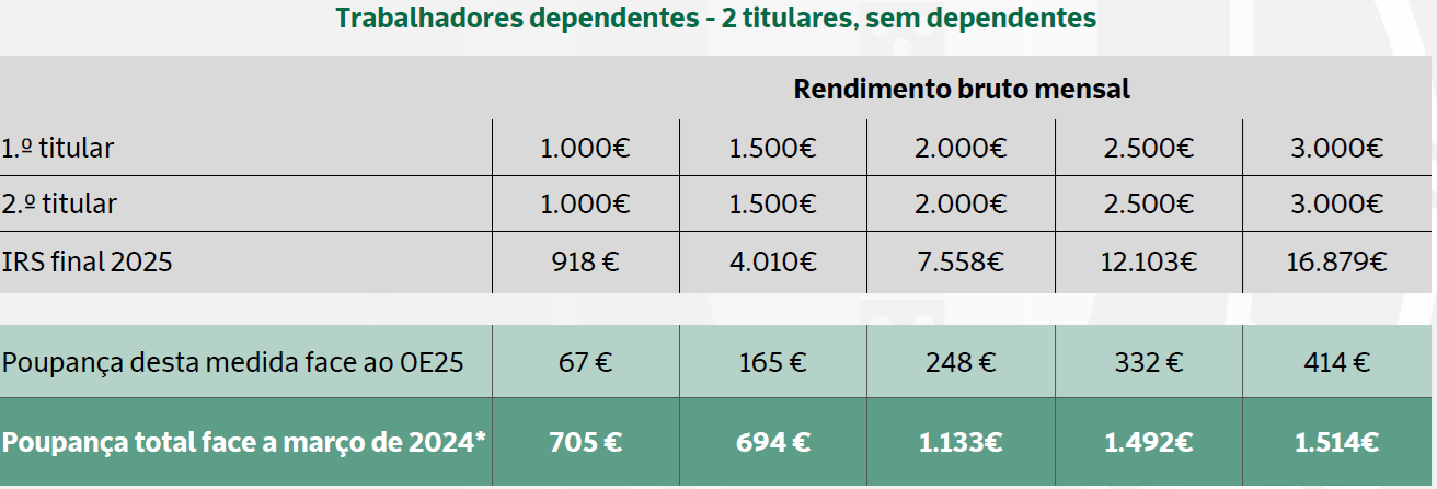 Na hipótese de dois titulares, sem dependentes, consulte em baixo as poupanças propostas: