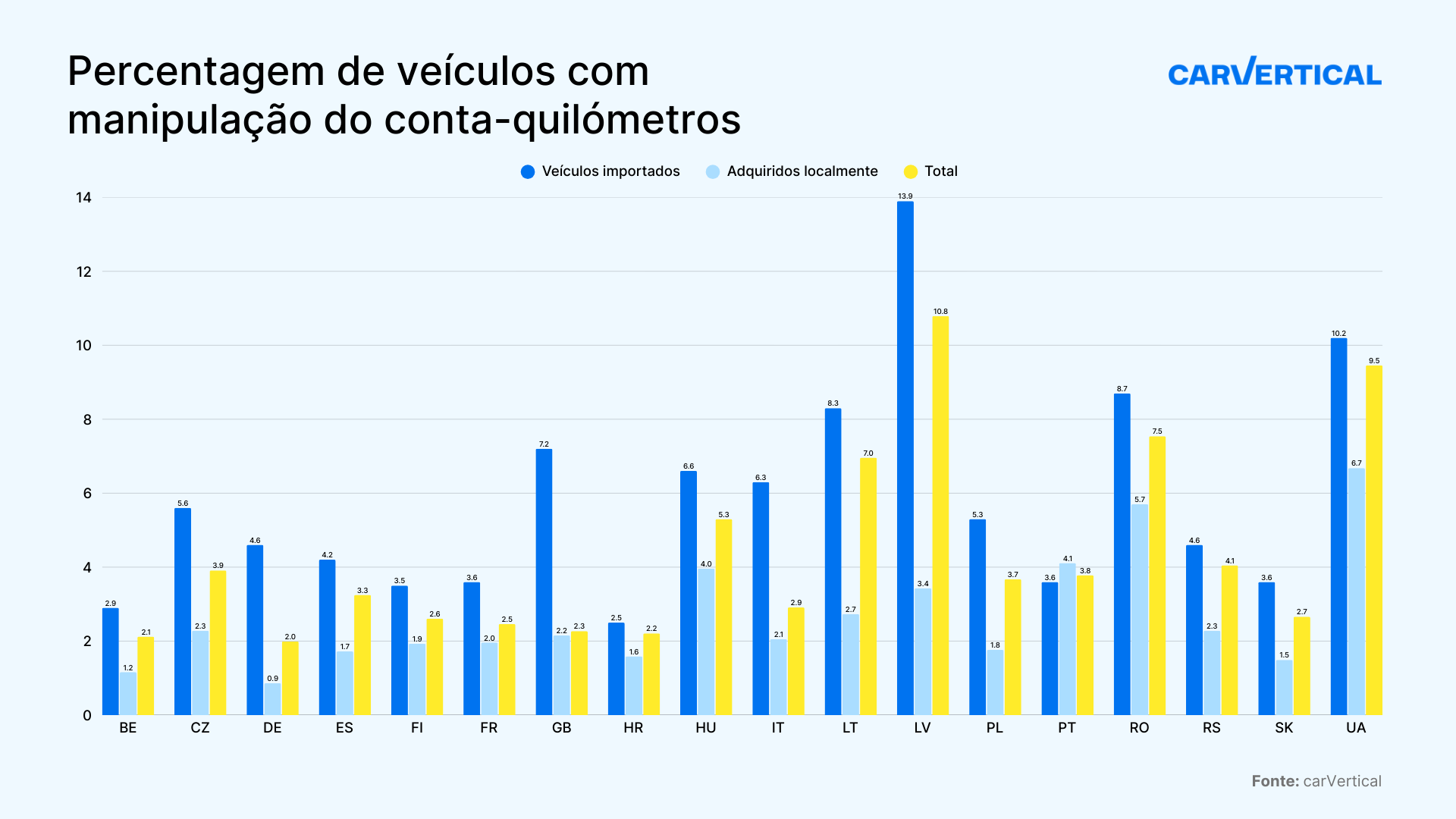 “Os diferentes países têm leis diferentes em relação à manipulação do conta-quilómetros, o que dificulta o controlo desse tipo de fraude a nível internacional. Como os países não trocam registos históricos de veículos, o histórico de um carro começa do zero assim que ele é exportado. É por isso que o risco de comprar um carro com quilometragem adulterada é sempre várias vezes mais elevado ao escolher um modelo importado”, explica Matas Buzelis, especialista em automóveis da ‘carVertical’.