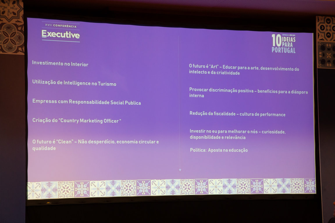 “10 ideias para Portugal” foi o mote do evento, que contou com as intervenções de nove oradores convidados. Cada um deles sugeriu três ideias para melhorar e desenvolver o País, colocando, mais tarde, as suas propostas a votos. Desta votação do público resultaram as 10 ideias discutidas na mesa redonda da conferência.